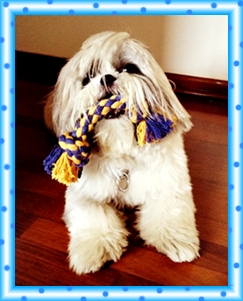 Este é o Nick, shitzu da Rosely (Jundiaí-SP). Ele adora brincar de "corre e pega" com seu cordão colorido.