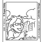 Tenho alguns personagens: A garota Andréa, Eddy, o Super-Herói, A Turminha da Ecologia. O meu predileto é o Super-Eddy (ao lado), um garoto rebelde, inteligente, que sonha em ser um herói e defender os fracos e oprimidos. Tenho muitos outros que estão na gaveta, pretendo ir soltando-os, aos poucos. |