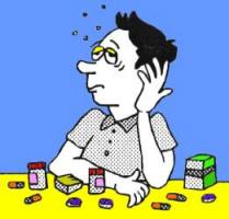 | O Seu Lourenço, da farmácia, estava com dor de cabeça, dor nas costas, dor de garganta... Mas não gostava de tomar remédios, só de vender. | ![]() |