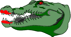 Outro dia passou batom vermelho na bocona do jacaré. E pra tirar foi um sufoco danado! Só dava aquela bocarra vermelha, com tanto dente branco dentro. |