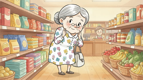 Na mercearia, olhou para um lado, olhou para o outro e falou: