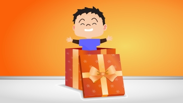 Presente Evelyn Heine Com a caixa Fiquei contente. Nem vi o presente.