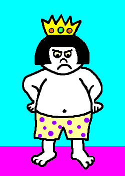 Então todos olharam muito espantados, porque o rei estava sem roupa, só com uma cueca de bolinhas roxas.