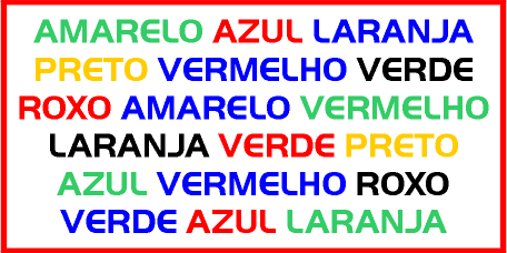 | Tente dizer, sem pensar e rapidinho, as CORES das palavras abaixo. |