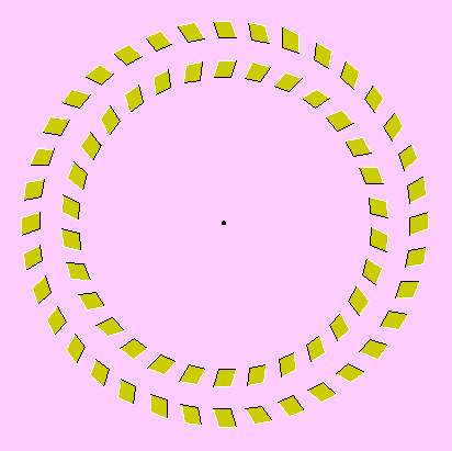 Veja só essa. O desenho não se mexe, mas você vai pensar que os círculos estão rodando.