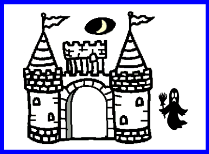 Muito bem... fixe o olhar na boca do fantasminha e conte até sessenta. Depois, olhe para a porta do castelo...