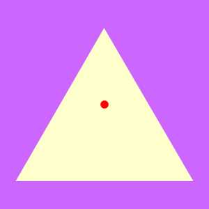A bolinha vermelha está mais perto da ponta de cima ou da parte de baixo do triângulo?