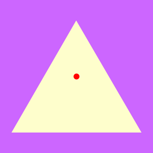 Viu? Não parece, mas a bolinha está bem no centro do triângulo.