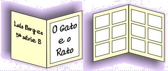 Dividindo uma folha de sulfite ao meio, posso fazer uma CAPA na primeira página, deixar a história na segunda e terceira, colocar meu nome e série na quarta, a última.